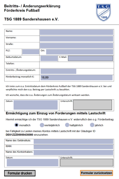 Falls Sie kein Vereinsmitglied oder Sponsor der TSG sind, unsere Fußballabteilung aber dennoch unterstützen möchten: